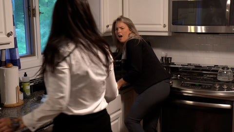 The main battle erupts between Jenna and Abby in a brutal, back-and-forth brawl—punches fly, grapples intensify, and the action spills everywhere. At one point, Abby gets rocked by a hard punch that sends her stumbling into the bathroom... right where Daphne is still on the toilet peeing! The interruption adds wild chaos as the fight continues with no mercy—hair-pulling, body slams, verbal taunts, and total domination until the judge turns the tide, overpowers Jenna, and calls the police to lock her up for good.